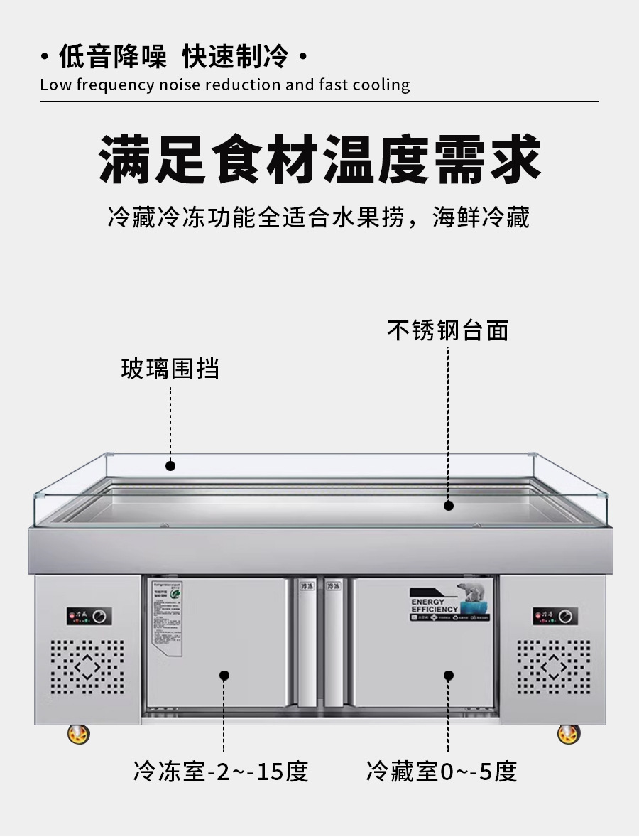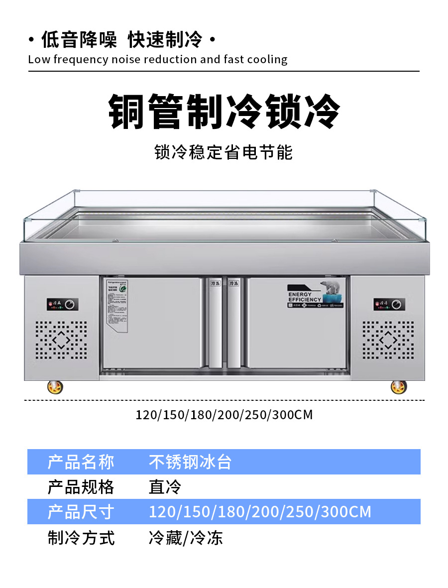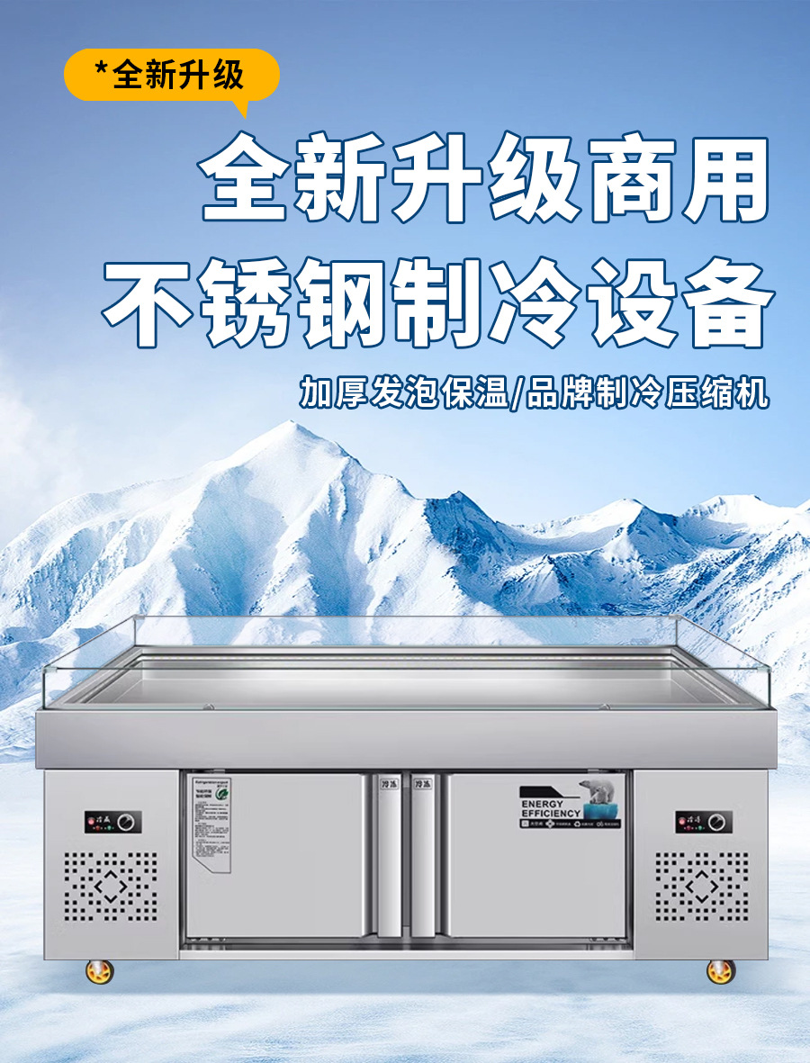 商用不锈钢海鲜冰台展示柜冷藏冷冻超市冰鲜台饭店卧式点菜柜