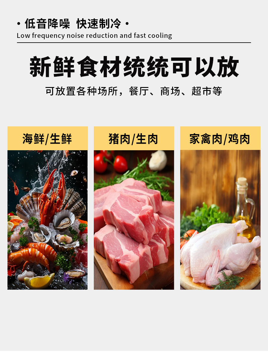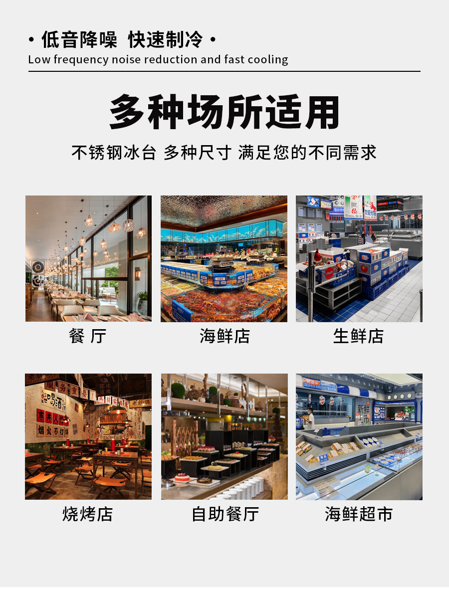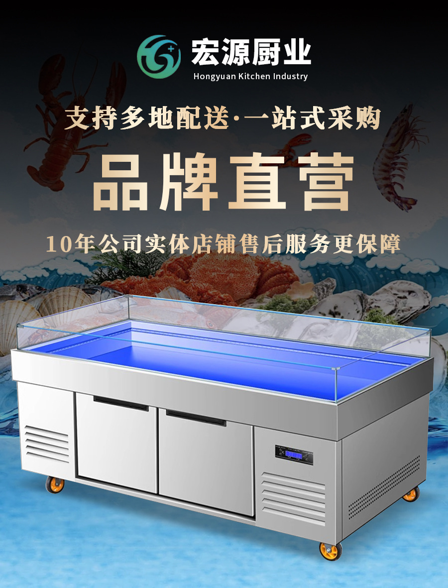 商用不锈钢海鲜冰台展示柜冷藏冷冻超市冰鲜台饭店卧式点菜柜
